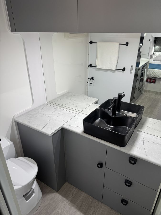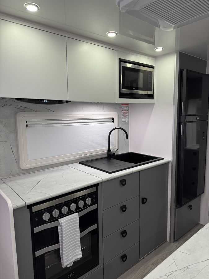 The Crusader Musketeer Warrior offers a comfortable L-shaped lounge, full oven and ensuite bathroom all in the convenience of a single axle caravan. The rear entry door offers separation between the bedroom and entry area and LED lighting throughout creates a bright and roomy feeling in a smaller van.