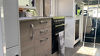 The interior of the Fremantle features a modern, sleek design with a focus on comfort and functionality. The dinette area has plush seating providing a luxurious feel and the space is well-lit with LED strip lighting under the overhead cabinets and additional spotlights. The layout is efficient, with the dinette situated adjacent to the kitchen and near the sleeping area, creating a cozy and integrated living space.